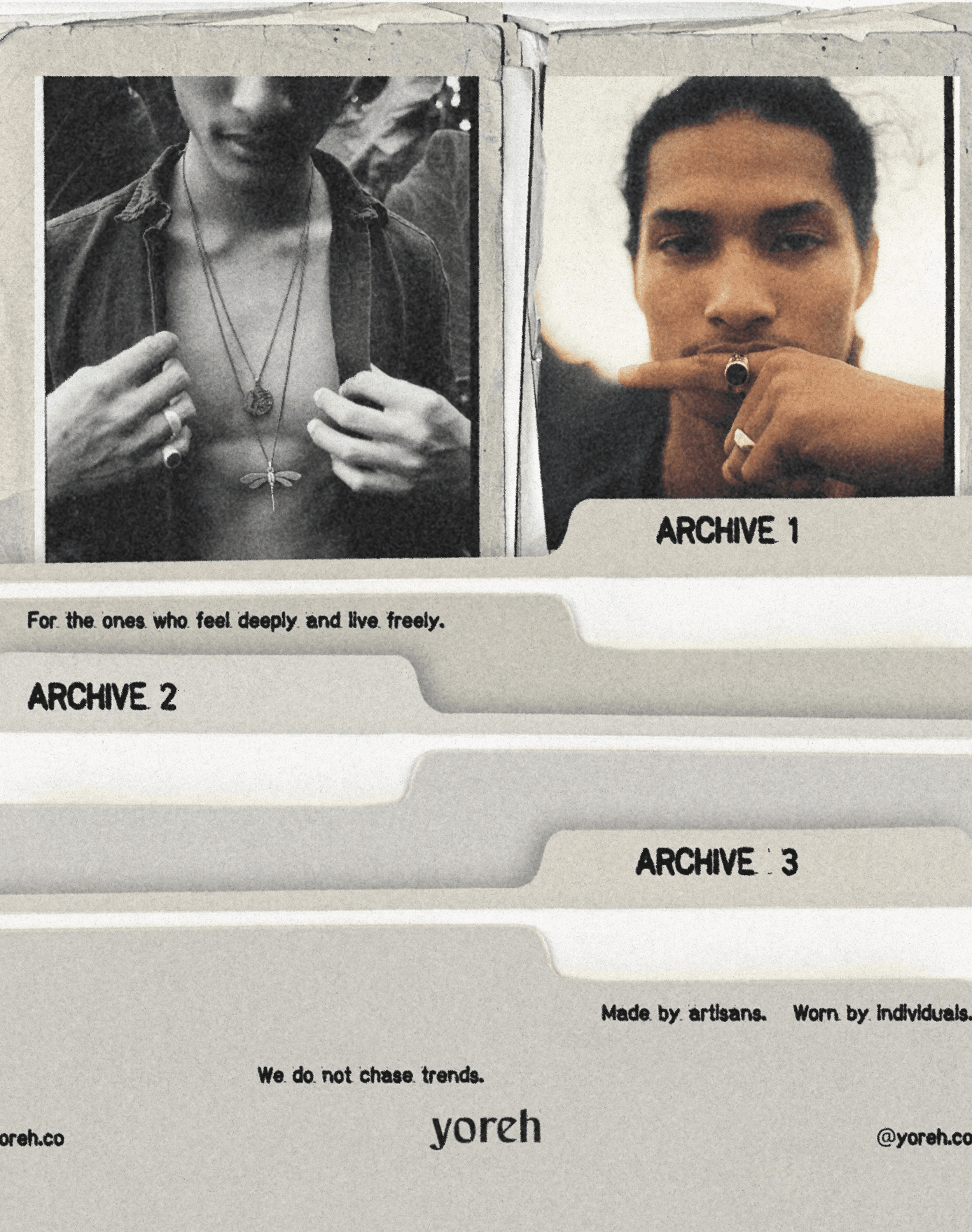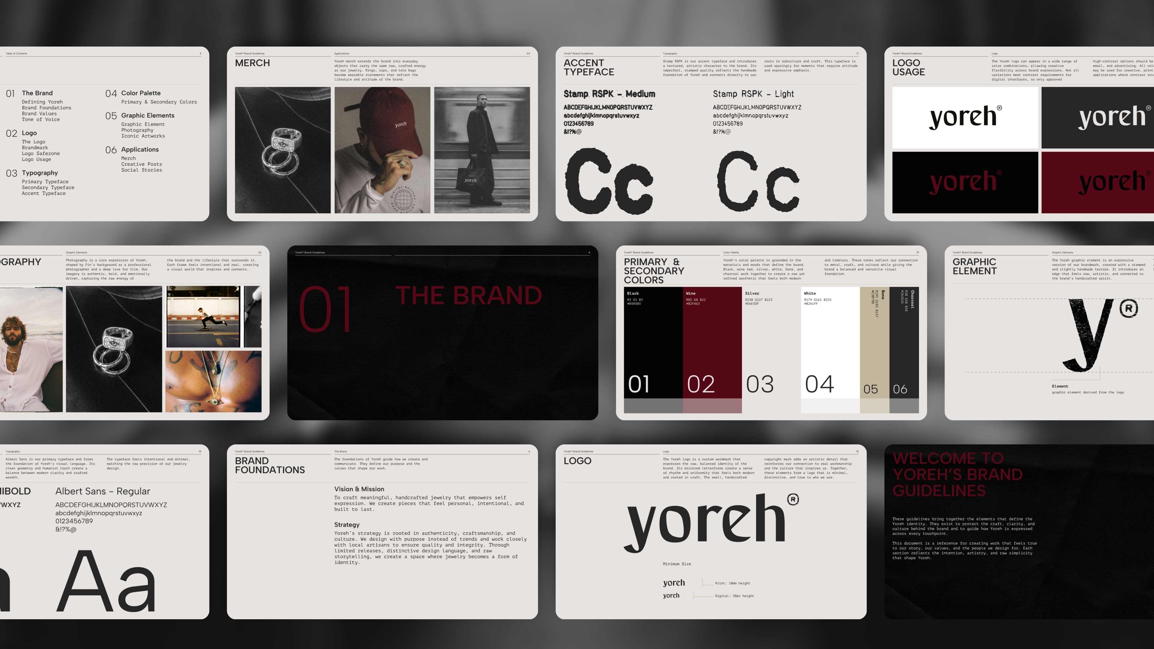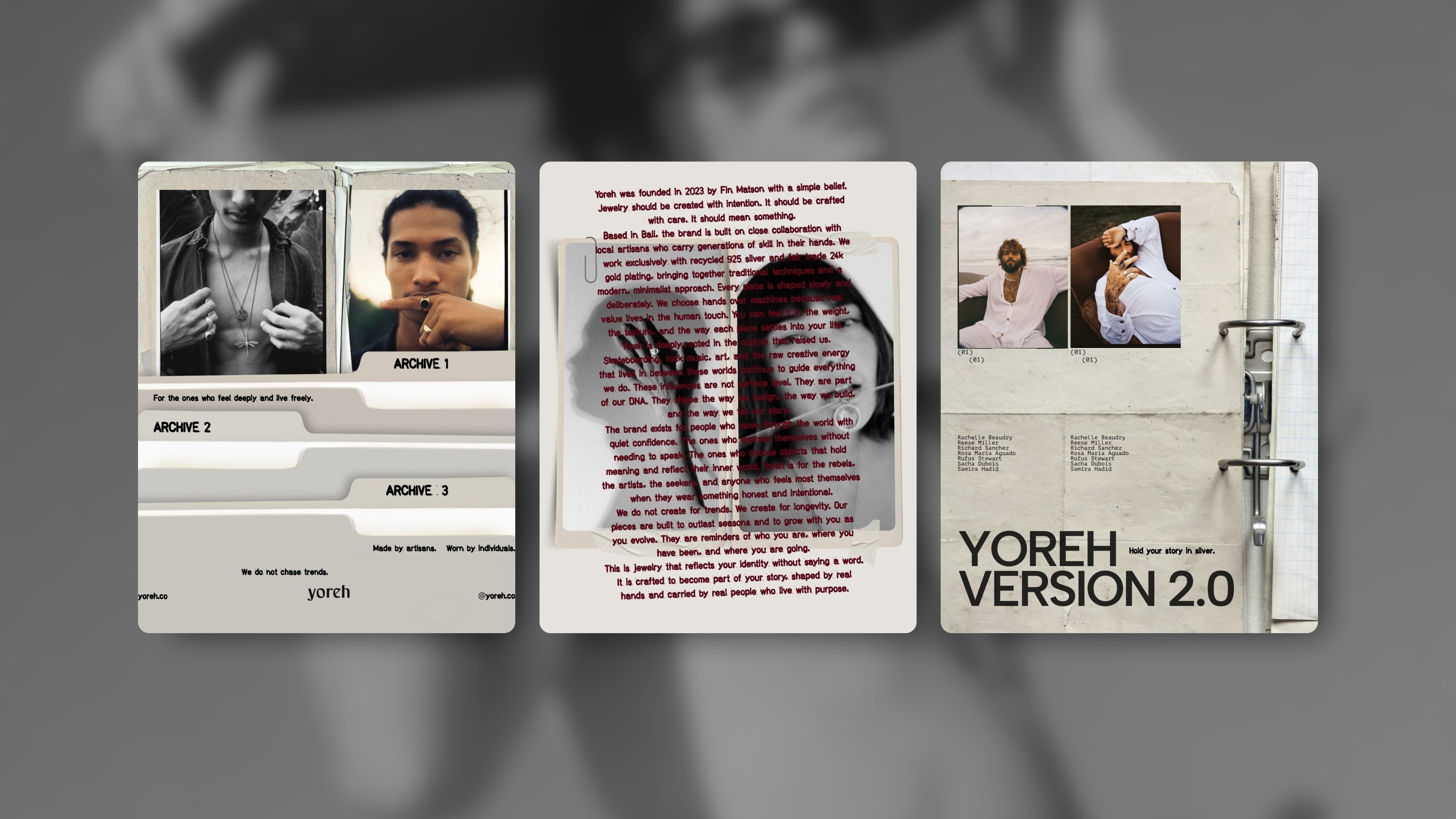 We created a cohesive visual system rooted in Yoreh’s world, introducing archive-inspired layering, custom typography, and a subtle logo refresh. The new identity strengthens recognition and clarity while remaining understated and authentic, giving Yoreh a flexible foundation to confidently launch, grow, and evolve.